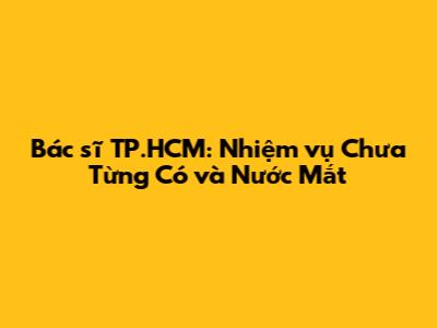 Câu chuyện về nhiệm vụ chưa từng có của các bác sĩ TP.HCM trong đại dịch COVID-19 là một minh chứng cho sự hy sinh và tận tâm của ngành y tế Việt Nam. Trong những thời khắc khó khăn nhất, họ đã không quản ngại nguy hiểm, ngày đêm chiến đấu để bảo vệ sức khỏe và tính mạng của người dân. Bài viết này sẽ đi sâu vào những trải nghiệm, khó khăn và cả những giọt nước mắt của các bác sĩ TP.HCM trong giai đoạn cam go này.