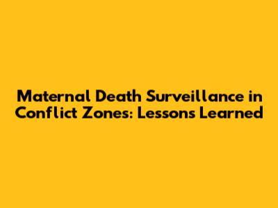 Maternal Death Surveillance In Conflict Zones: Lessons Learned