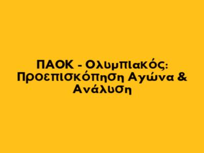 ΠΑΟΚ - Ολυμπιακός: Προεπισκόπηση Αγώνα & Ανάλυση