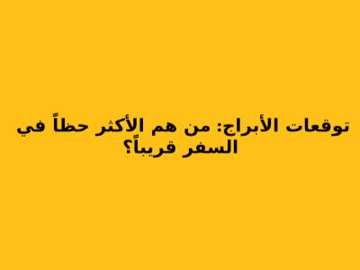 هل أنت مستعد لمعرفة ما إذا كان برجك من بين الأبراج المحظوظة التي ستسافر قريباً؟ تابع القراءة لتكتشف التوقعات الفلكية ونصائح الخبراء التي ستساعدك على التخطيط لرحلتك القادمة. السفر هو تجربة تغير الحياة وتوسع الآفاق، وقد يكون الوقت قد حان لتحقيق هذه التجربة الرائعة. استعد لرحلة العمر!